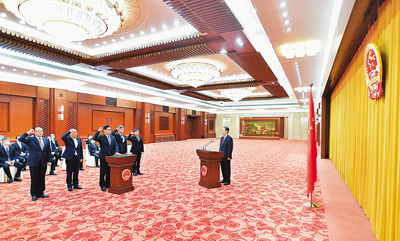宣誓后,赵乐际希望大家始终牢记誓言,忠于宪法、遵守宪法、维护宪法,加强宪法实施,履行宪法使命。
