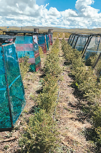 经过筛选和比对,团队从青藏高原和库布其沙漠优选了50多种乔灌木,培育了青海云杉、高山柳、金(银)露梅等8种在那曲越冬保活率较高的树木品种。