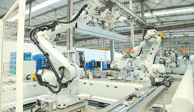 浙江省杭州市临平区经开区一座“黑灯工厂”,智能机械臂正忙着工作。 |