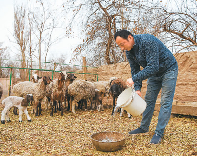 在高昌区亚尔镇,村民取坎儿井的水喂羊。 |