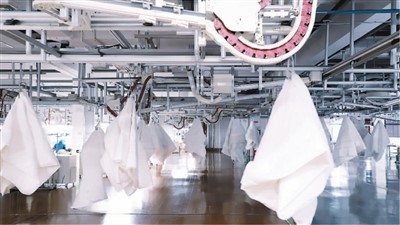 图为罗莱集团家纺芯类产品自动化制作车间。 |
