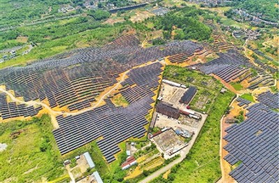 日前,贵州省黔西南布依族苗族自治州所辖八县(市)现有光伏、风力等四十余家新能源发电厂并入南方电网,并网容量三千一百余兆瓦,为“西电东送”注入清洁能源。图为位于黔西南州兴义市清水河镇的二百二十千伏白岩光伏发电站。 |