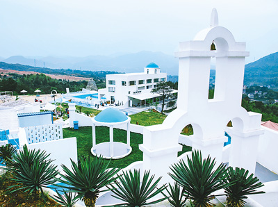 在浙江省青田县仁塘湾村的大山里,有一座蓝白相间的地中海式庄园。站在庄园高处远眺,仿佛置身希腊海岛。