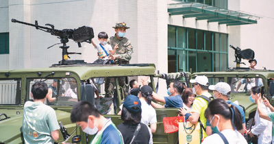 图为市民在中国人民解放军驻澳门部队第十七次军营开放活动上参观。 |