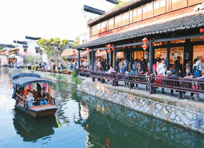 5月1日,素有“文化之邦”和“诗书之乡”之称的浙江省湖州市国家5A级景区南浔古镇,游人如织。 周方玲摄(人民视觉)