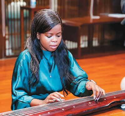 4月18日,在中国宋庆龄青少年科技文化交流中心,非洲青年体验中国传统乐器古琴。 |
