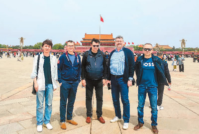 俄罗斯游客游览北京天安门广场。 |