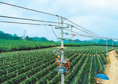 近日,在广西壮族自治区南宁市隆安县那桐镇金穗火龙果产业核心示范区内,南方电网广西南宁隆安供电局电网建设人员正在进行配电自动化开关安装。该设备投入使用后,可实现电网运行状态的自动判断和自我修复,“数智化”使电力供应更加稳定可靠。 |
