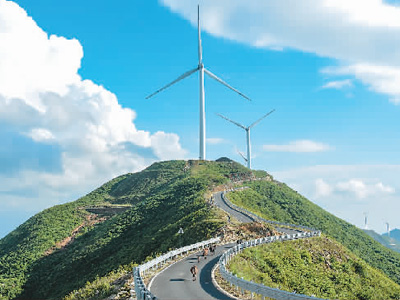 近年来,江西省吉安市遂川县大力推动清洁能源、风电产业发展,风电成为当地经济发展新的增长点。图为遂川县与赣州市上犹县交界的筑峰顶上的风力发电场。 |