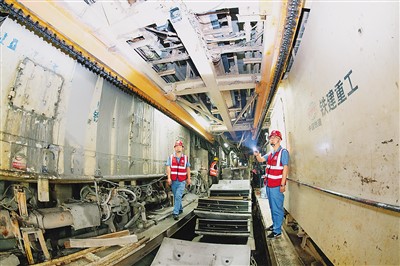 6月4日,太原地铁1号线学府街东口站处盾构隧道贯通,标志着管段主体结构工程完成。太原地铁1号线一期工程全长28.8公里,连接太原站、太原南站两个铁路枢纽,建成后将成为太原市第二条地下交通“大动脉”,全线预计2024年年底开通运营。图为中铁二十二局集团轨道分公司技术人员在太原地铁1号线检查盾构机铺设管片情况。