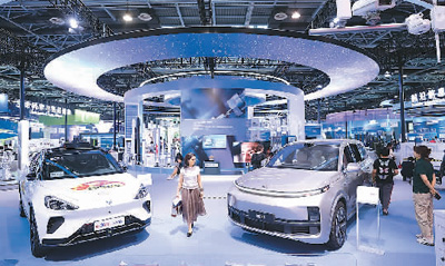 5月28日,观众在2023中关村论坛展览(科博会)上参观展出的自动驾驶汽车和智能电动汽车。 |