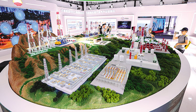 5月28日,观众在2023中关村论坛展览(科博会)上参观中国石油科学技术成果沙盘。 |