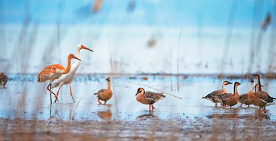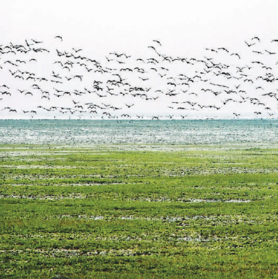众多鸟儿来网湖栖息。 |