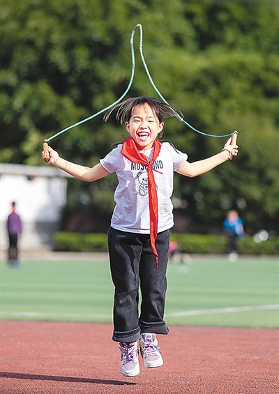 近年来,贵州省从江县各中小学校坚持确保学生每天锻炼1小时,促进青少年儿童健康成长。图为3月13日,从江县刚边壮族乡中心小学学生在体育课上跳绳。 |