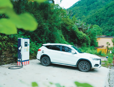 近日,云南怒江独龙江乡顺利投运3个充电桩。图为一辆新能源车在该乡的充电桩充电。 |