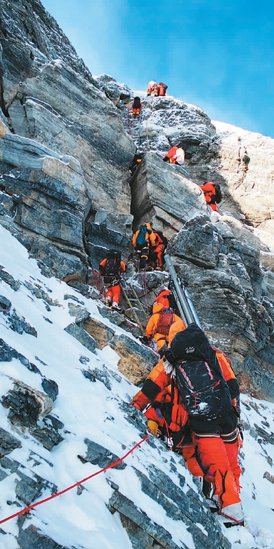 科考登顶队员在冲顶。 |