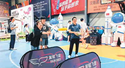 图为台青在嘉年华现场参与“飞盘九宫格”趣味运动项目。 |