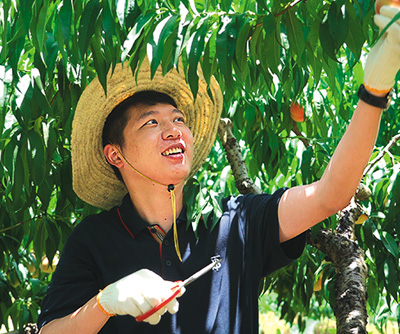 从开发村里的自然资源入手,我开始了试水。村里有20多年的水蜜桃种植历史,每年6月底,一颗颗水蜜桃压弯了枝头,红彤彤一片。我便以社交网络为媒介,承接各种团体采摘游,吸引八方来客。