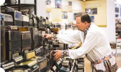 亚历山大在手风琴珍藏馆整理手风琴。 |
