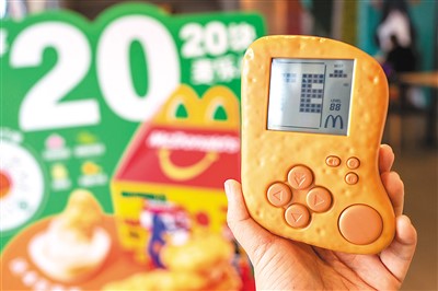 日前,上海一家麦当劳门店,麦乐鸡造型的俄罗斯方块游戏机很吸睛。 |
