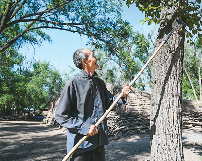 曹扎娃在给树木清理枝杈。 |