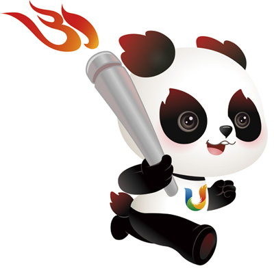 除了手中“31”字样火焰的大运火炬,“蓉宝”的耳朵、眼睛、尾巴也皆呈现火焰形态,凸显了“火”这一天府文化中的重要标签。
