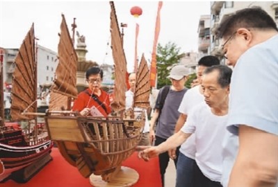云淡端午平安龙舟竞渡习俗包含农历五月初四、初五的母船巡海洗港和龙舟竞渡活动两大部分,以巡海洗港、幡杆巡庥、亮船、抢竹枝为主要程式,承载民众对出海顺遂、生命健康、国泰民安的美好期待和追寻。文化节期间,受邀的专家学者调研了龙舟母船下水仪式及巡港、海上龙舟赛等端午节俗,观摩了水密隔舱福船制造技艺(如图)、南音、柯派高甲戏、霍童线狮表演等非遗项目展示,深入考察云淡地方特色鲜明的传统村落和居民生产生活方式,近距离感受当地端午节俗蕴含的由纪念抗倭英雄演变、塑造、充实而成的精神信仰和价值观念,体悟传统节日所辐射的情感认同力量。