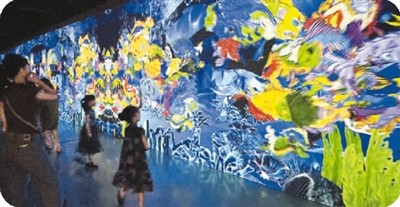 观众参观“探秘山海经”大型沉浸艺术展。 |