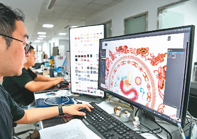 多彩贵州文化数据平台有限公司的设计师在电脑上做苗绣矢量化提取。 |