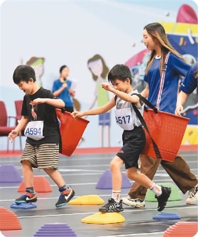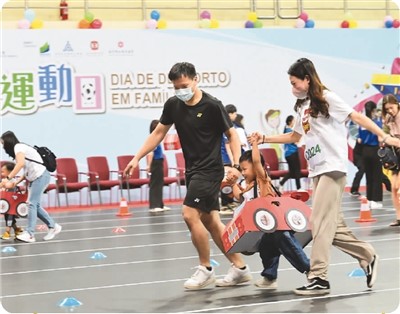 近日,由澳门特区政府体育局主办的“2023亲子运动日”在澳门塔石体育馆举行。活动中,家长和小朋友组成“家庭战队”,合作完成各类趣味运动项目,共享欢乐亲子时光。