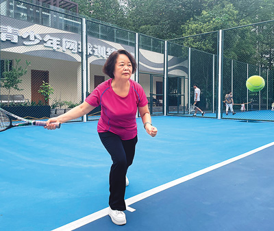 现在,家门口的运动健身场地越来越多,随时随地都能动起来,真是太方便了。我和球友们约定,只要跑得动,网球我会一直打下去。