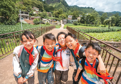 贵州省毕节市赫章县铁匠乡处卓村,孩子们走在上学路上。 |