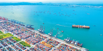 7月25日,广东省广州市南沙港一片繁忙,货轮进出港穿梭不断,码头吊机装卸集装箱有条不紊。 |
