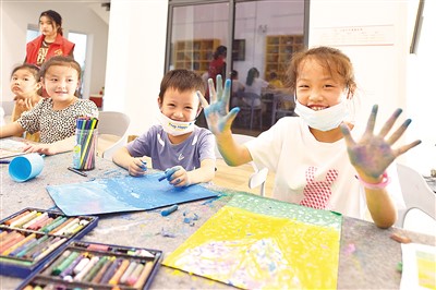 江口村的孩子在艺术区工艺美术培训班上画画。 |