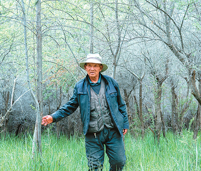 索朗拉杰抱着40多年前种下的沙棘。 |