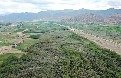 从西藏自治区拉萨市出发,汽车沿泽贡高速、202省道一路向东南行驶300多公里,经过雪布下检查站后,就到了西藏自治区山南市隆子县城。汽车继续行驶在柏油路上,道路旁是密密麻麻的沙棘林,沙棘林的另一边是隆子河谷……隆子县位于喜马拉雅山北坡,海拔3800多米。很难想象,眼前林木遍野的隆子河谷边,半个多世纪前还是裸露的沙石地,一年有近8个月的沙尘天气。