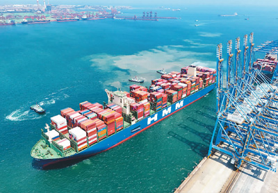 据青岛海关统计,今年前7个月青岛市外贸进出口5105.1亿元人民币,比去年同期增长7.8%。其中,出口2794.7亿元,增长3.5%;进口2310.4亿元,增长13.5%。图为8月10日,在山东港口青岛港,一艘货轮在缓缓靠泊码头。