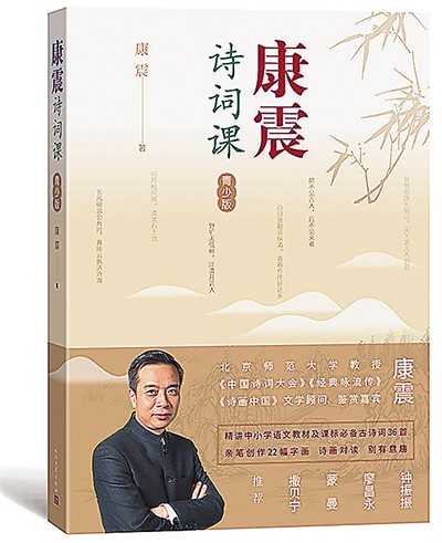本报电 (董世捷)近日,《康震诗词课(青少版)》由人民文学出版社出版。该书汇集从先秦至明清的36首古诗词,全部来自统编版中小学语文教材及新课标推荐背诵篇目。该书通过作者的评注讲解,为青少年打开一扇通往诗意世界、领略古典文化的窗户。