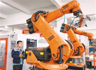 8月29日,位于江苏省张家港市凤凰镇七侠高科创业园的苏州玉达机器人有限公司车间内,技术人员正在调试工业机器人。 |