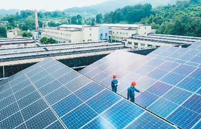 近年来,贵州省贵阳市坚持绿色发展理念,引导企业利用厂房屋顶闲置区域,建设分布式光伏发电站,助力企业降本增效,促进地方经济绿色低碳发展。截至今年上半年,贵阳市新能源总装机容量达531.33兆瓦,发电量达8.1172亿千瓦时。图为南方电网贵阳供电局员工近日为某企业屋顶光伏发电站项目做并网前的检查。
