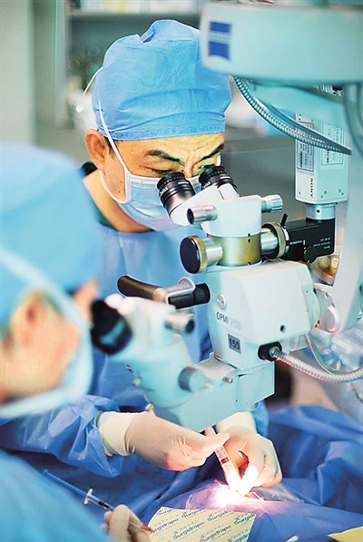眼科医生在“健康快车”上为患者实施手术。 |