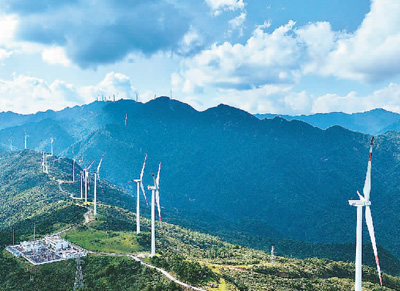安徽省安庆市岳西县利用大别山区丰富的自然资源,大力推进风电等清洁低碳新能源建设,打造天蓝、地绿、水清的生态山乡美景。