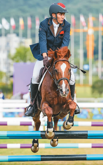 9月24日,中国队选手罗帅在男子个人马术比赛中。 新华社记者 孙 非摄