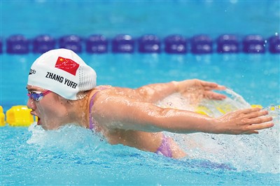 9月24日,中国选手张雨霏在女子200米蝶泳决赛中。 新华社记者 夏一方摄