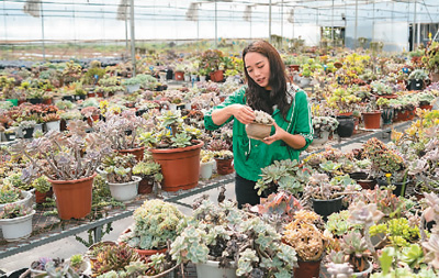 云南省昆明市晋宁区宝峰街道的多肉植物凭借成色好、品质高等优点,畅销各大直播电商平台。目前,宝峰街道多肉植物种植面积超6000亩、年产值超4亿元。图为宝峰街道的一位多肉植物销售主播在当地直播基地工作。 |