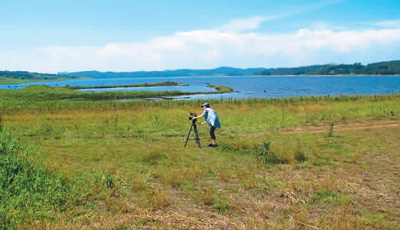 2015年1月,张伟民第一次到摩诘镇,张大千故居八德园已沉眠于一片广阔湖泊中。看着眼前的湖泊、山丘、溪流,再品味张大千的八德园景图,张伟民对张大千心中的“桃花源”有了更直观的感受。八德园酷似巴山蜀水的环境,景图中模仿中式园林的设计,更让张伟民感受到张大千旅居海外的浓浓乡思。