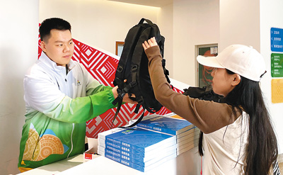 这项工作看起来不太复杂,但需要心细。我们总共要派发大约1000个媒体包,里面包含了运动服、水杯、笔记本、学青会吉祥物等物品。当每位记者来前台领取时,我们要一一核对他们的证件信息,再请他们签名领取,以免误拿。