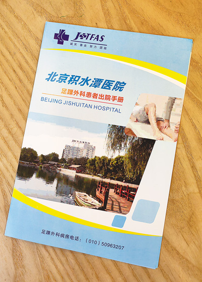 图为足踝外科为出院患者准备的服务手册。 |