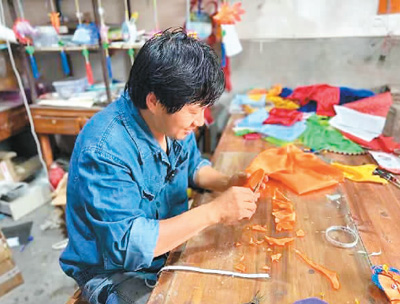 申屠飞东在制作花灯。 |