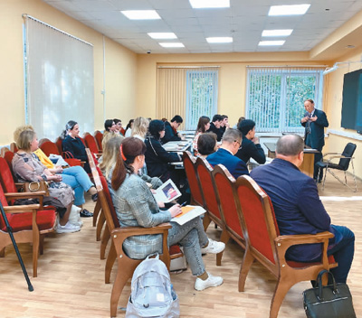 中国学者在俄罗斯中国国际学校给学生们做讲座。 |